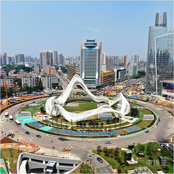《星河》高40m 直徑90m 不銹鋼 鋼結構 設計:北京央美城市公共藝術院 2019年 位于武漢光谷廣場