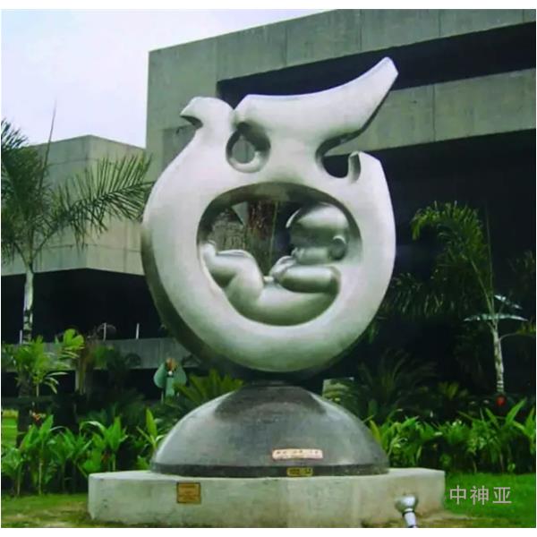 《團結、和平、未來》 高2.6m 不銹鋼、花崗巖 設計:張得蒂 1989年 位于菲律賓國際會議大廈國際雕塑公園