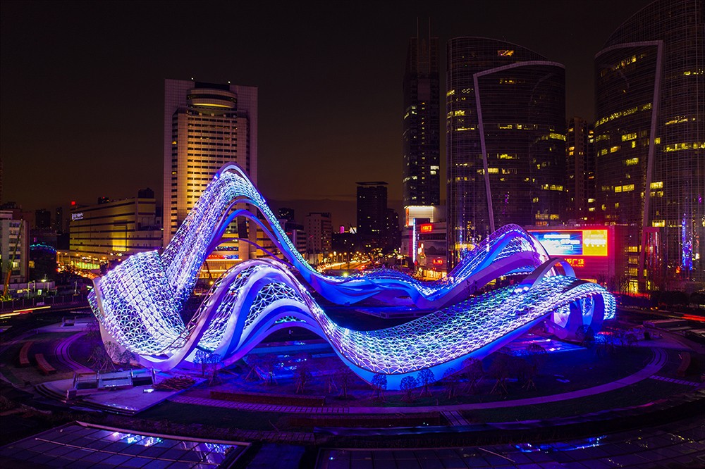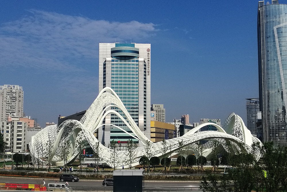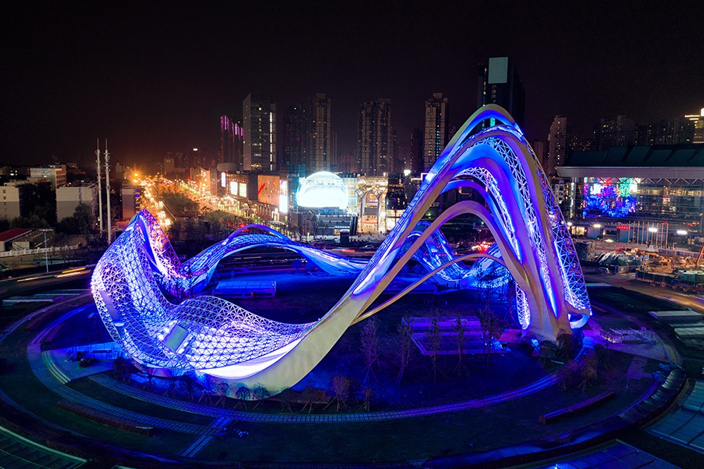 《星河》高40m 直徑90m 不銹鋼 鋼結構 設計:北京央美城市公共藝術院 2019年 位于武漢光谷廣場